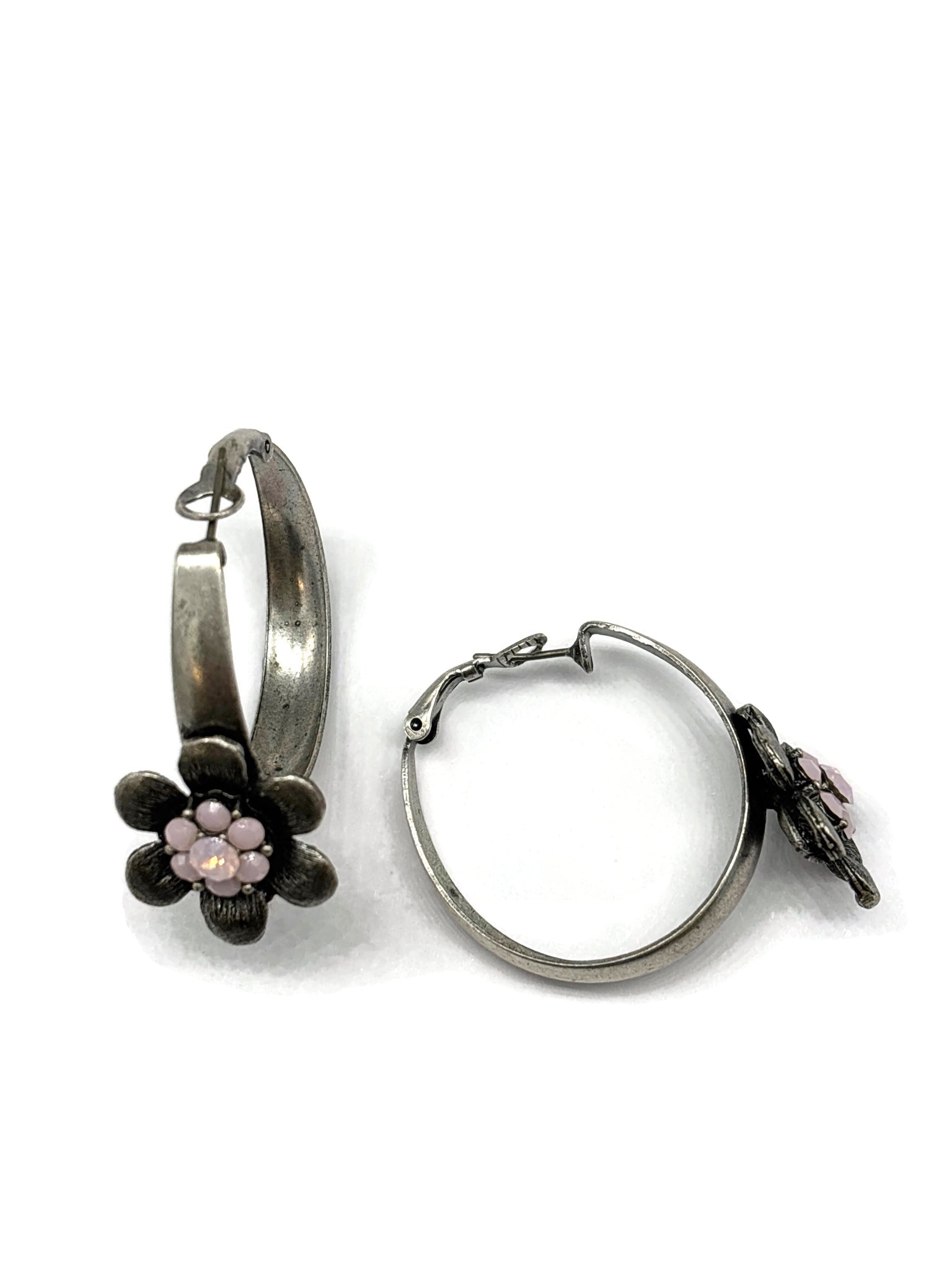 Pink hoopla flower post hoops in antique silver. Approximately measuring 1” Circumference. Final Sale.