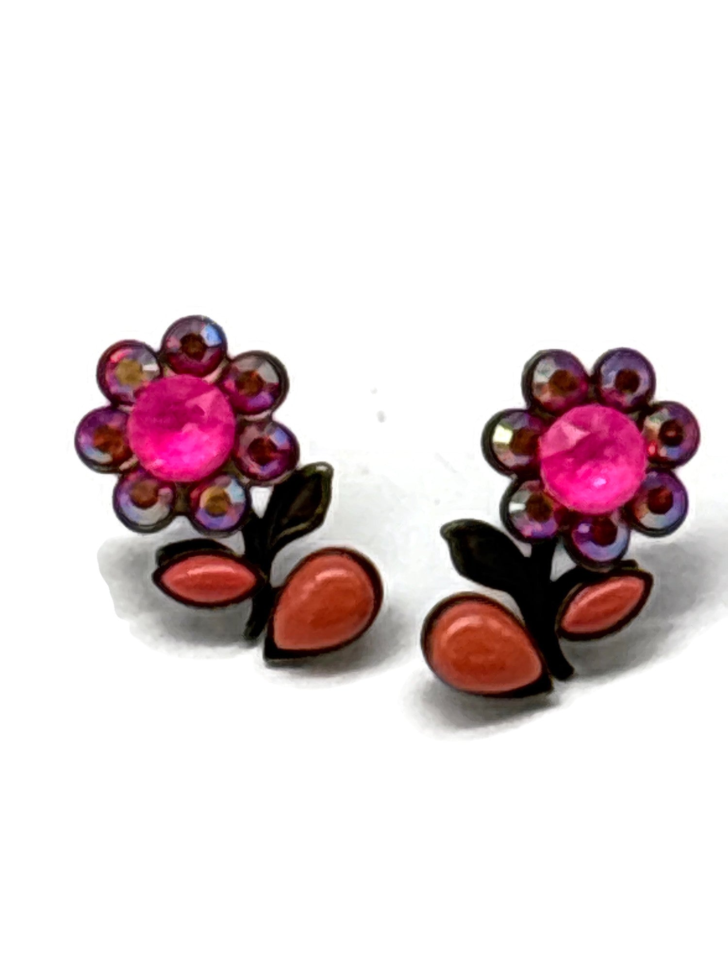 Flower post earrings in Corals and electric pink crystals. Approximately measuring 3/4”L,1/2” W. Final sale.